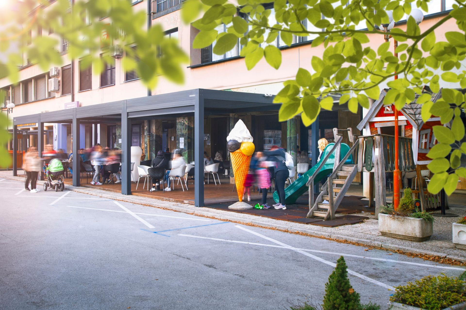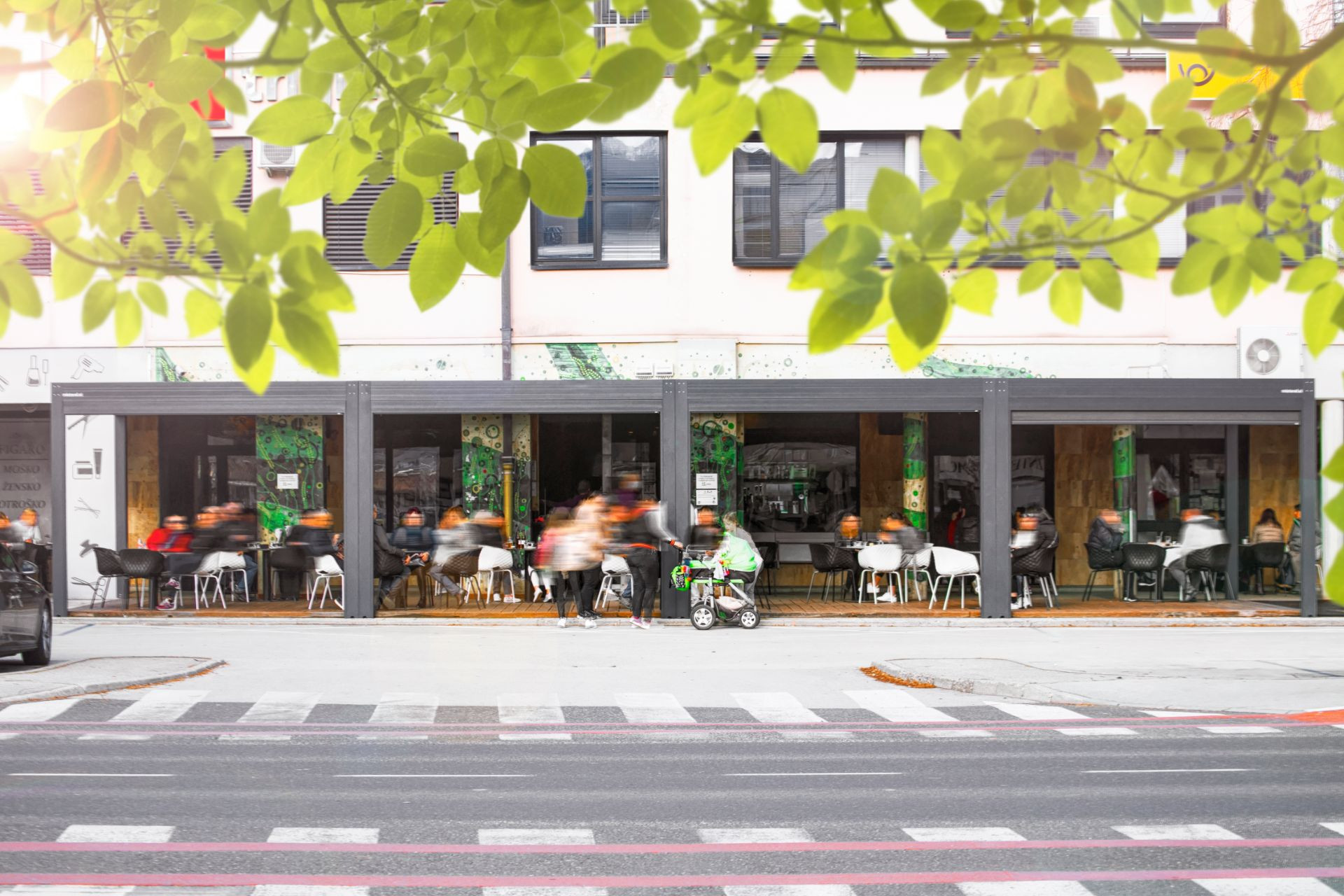 Projekt Central Sevnica - Die bioklimatische Pergola Misteral - Terrasse, Brisole, Seitliche ZIP-Rollos